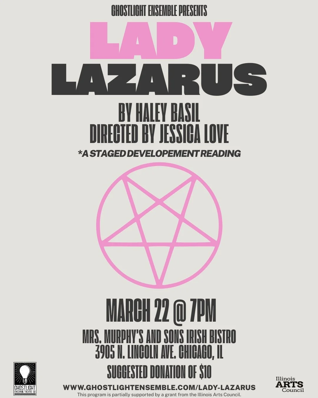 THIS YEAR! Ghostlight Ensemble (which was just named Chicago’s storefront theatre of the year) is producing a staged reading! Wahoo!!!